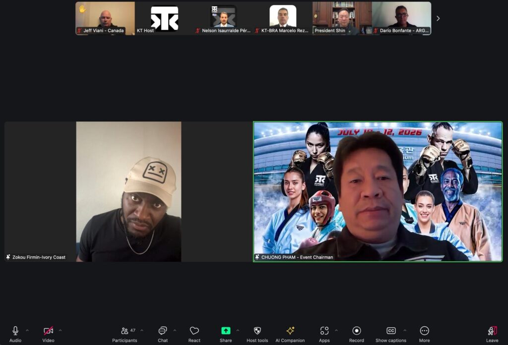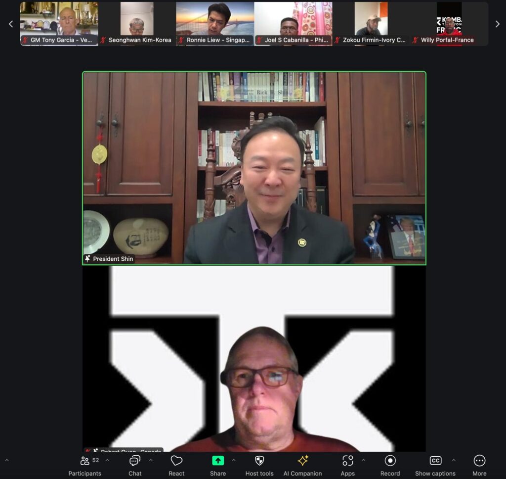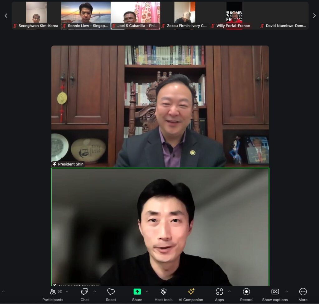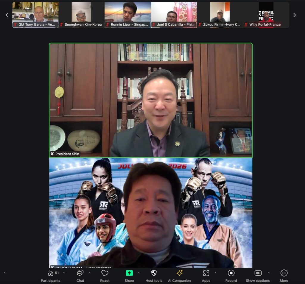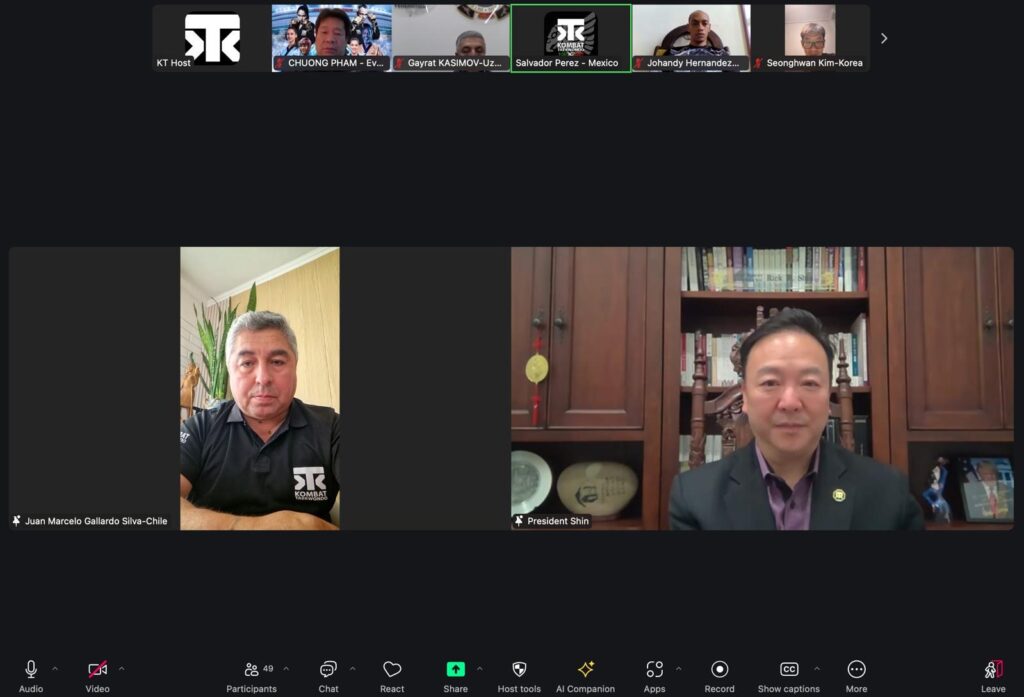 En una reunión virtual realizada ayer, 22 de febrero, los presidentes nacionales de Kombat Taekwondo de todo el mundo se conectaron bajo la dirección del Grand Master Rick W. Shin, presidente de Kombat Global y de la Professional Taekwondo Federation (PTF). El encuentro marcó un hito en la evolución de la organización, con anuncios que amplían su alcance y profesionalismo.